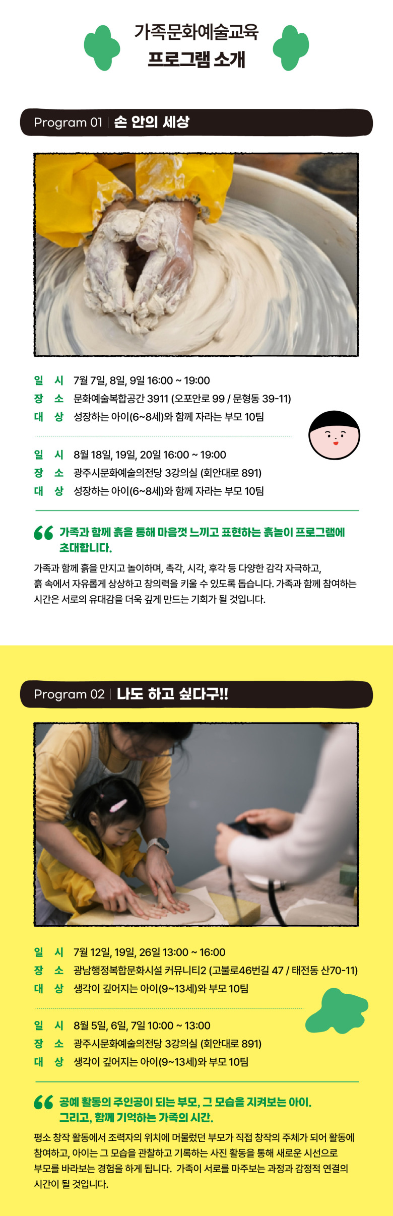 * 본 프로그램은 광주시 가족센터와 함께 하는 프로그램으로, 광주시 가족센터 홈페이지 회원가입 후 참여 신청 가능합니다.