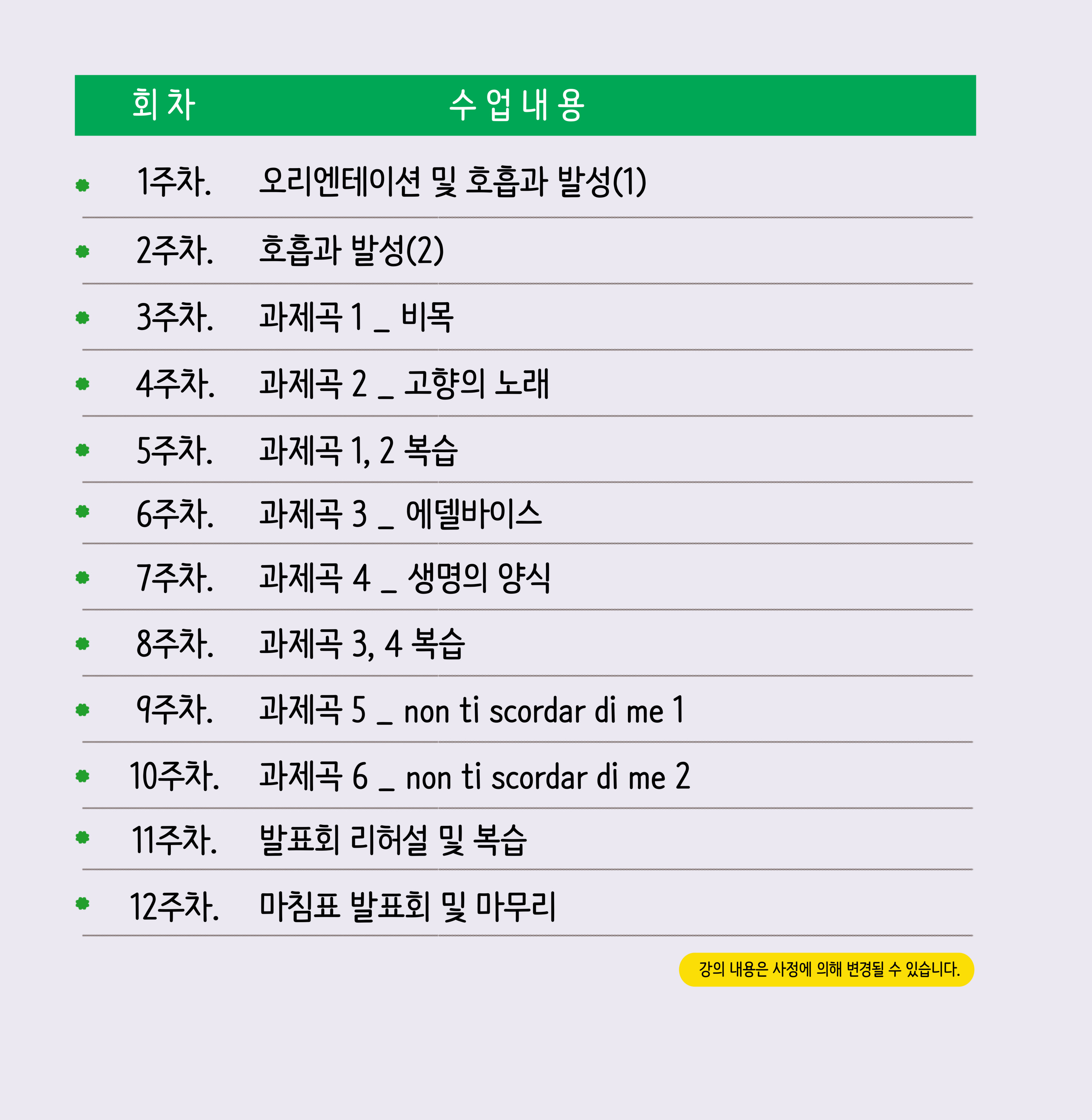 - 강좌별 커리큘럼은 일부 사정에 따라 변경될 수 있습니다.