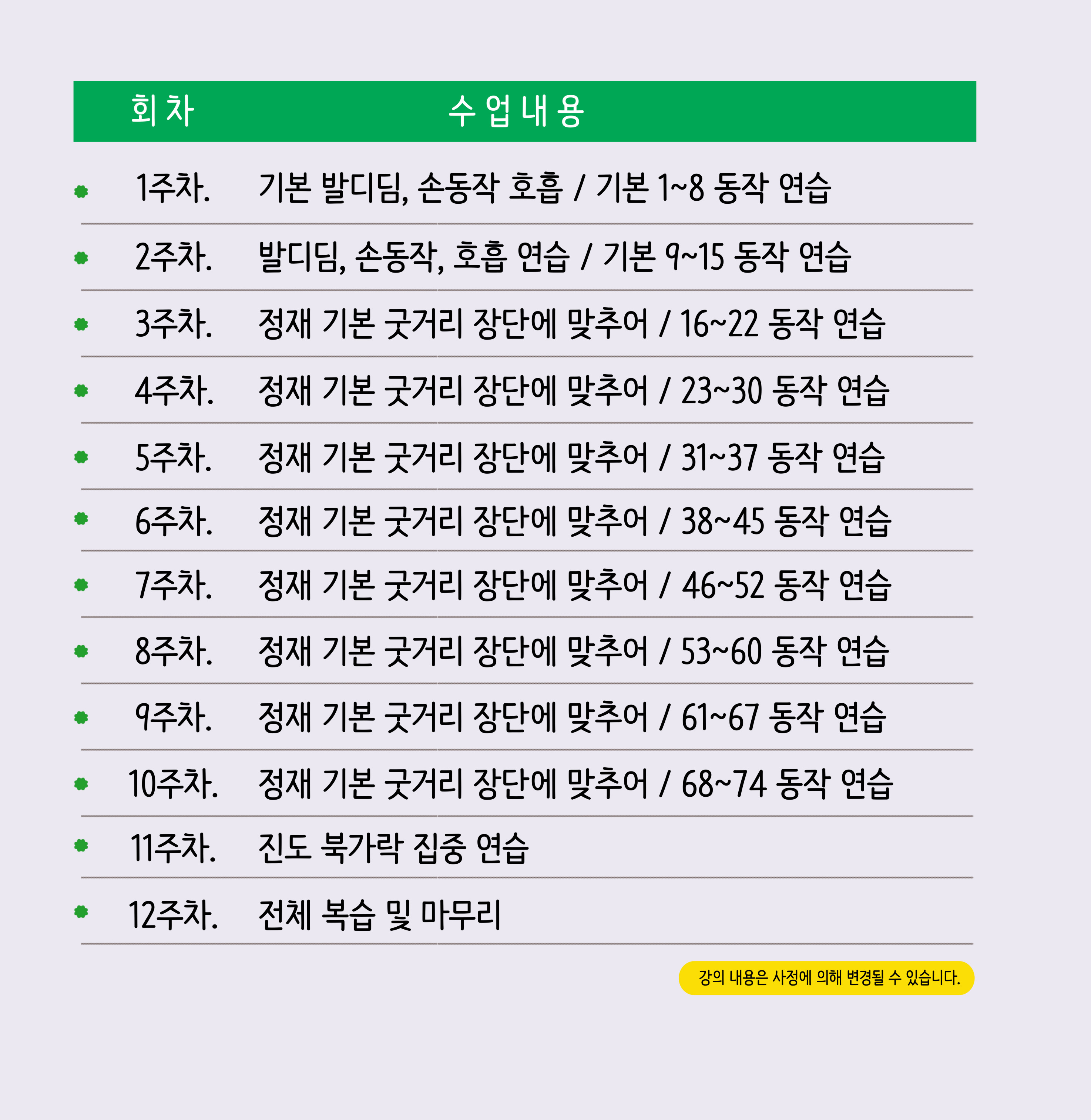 - 강좌별 커리큘럼은 일부 사정에 따라 변경될 수 있습니다.