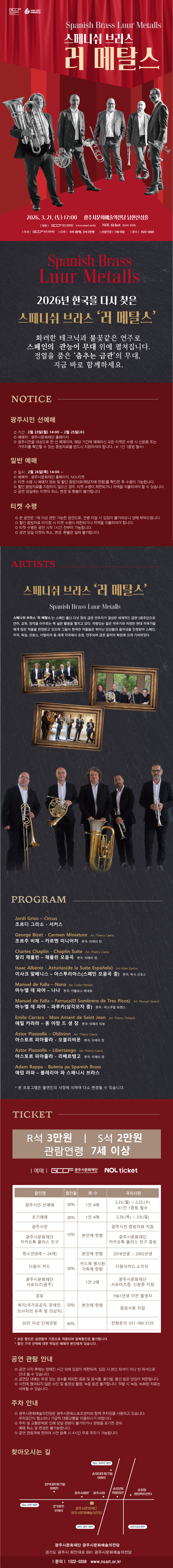 - 광주시문화재단 홈페이지 www.nsart.or.kr (예매 수수료 없음)